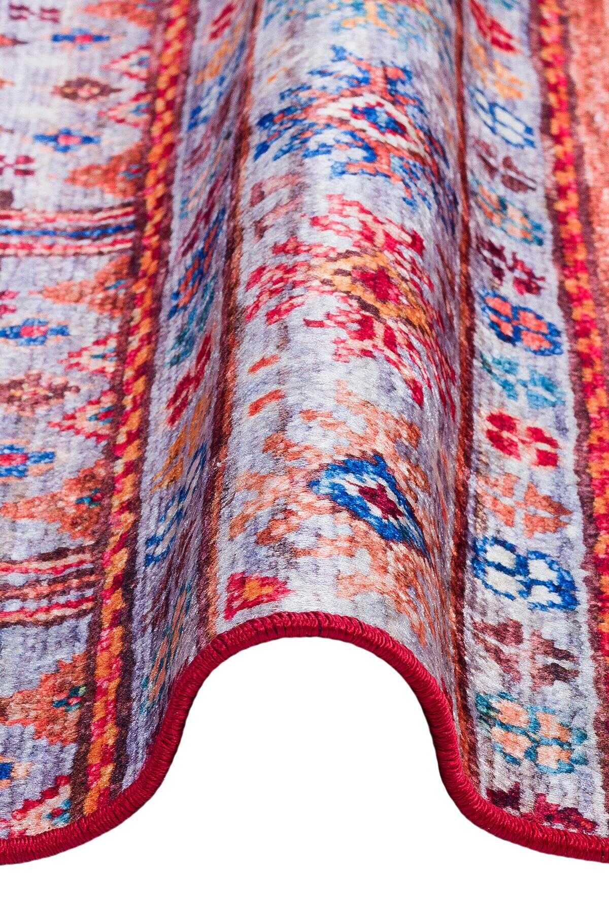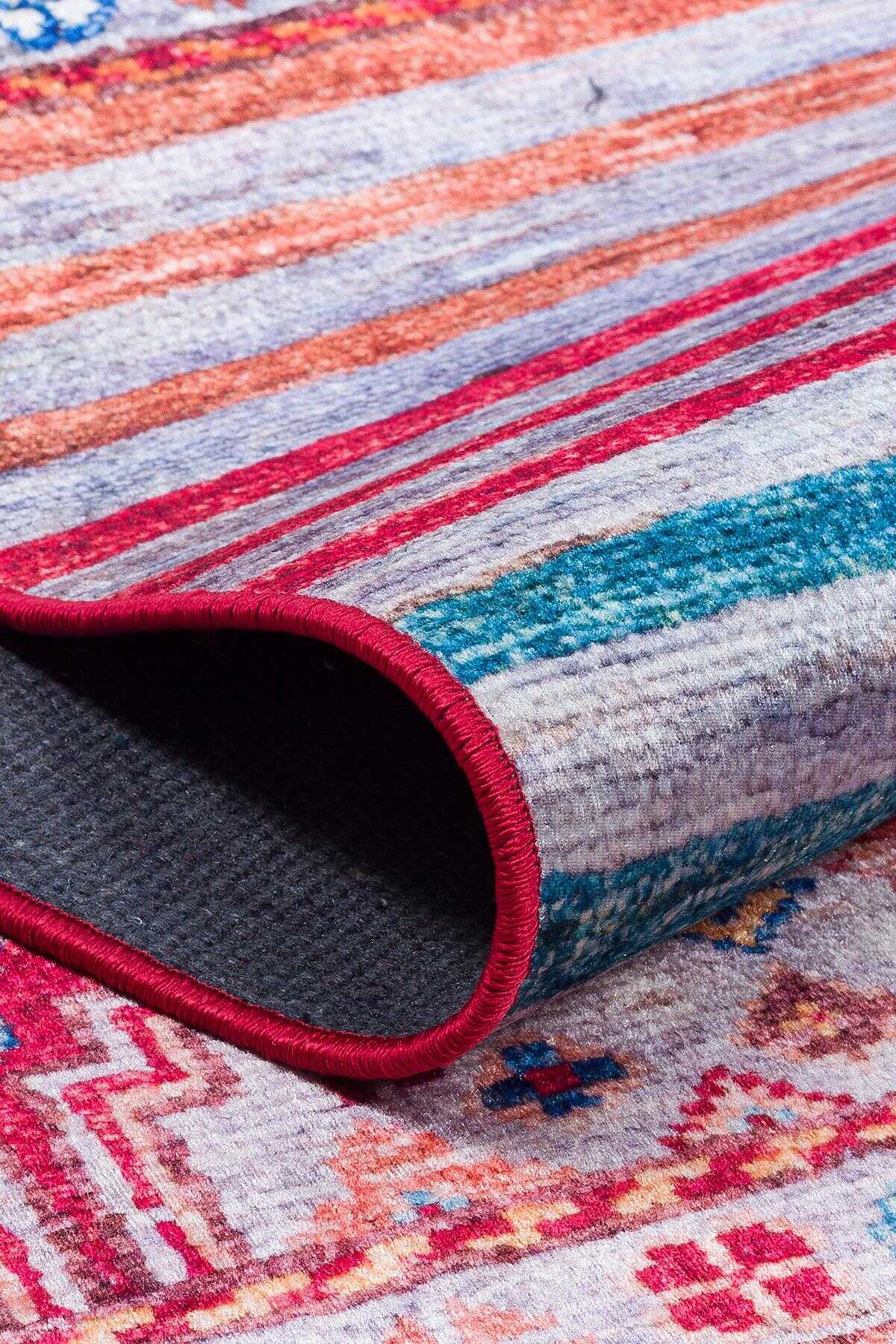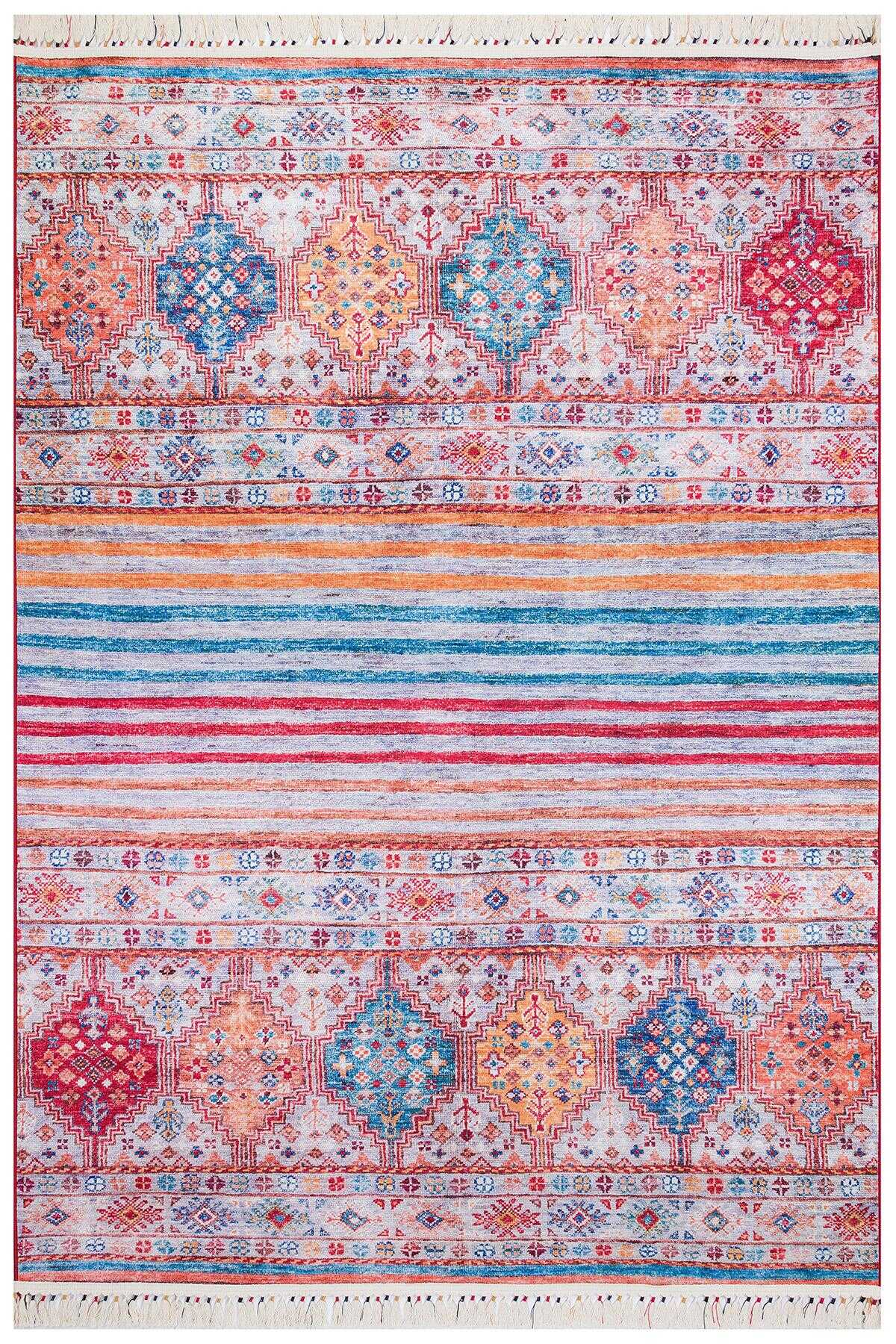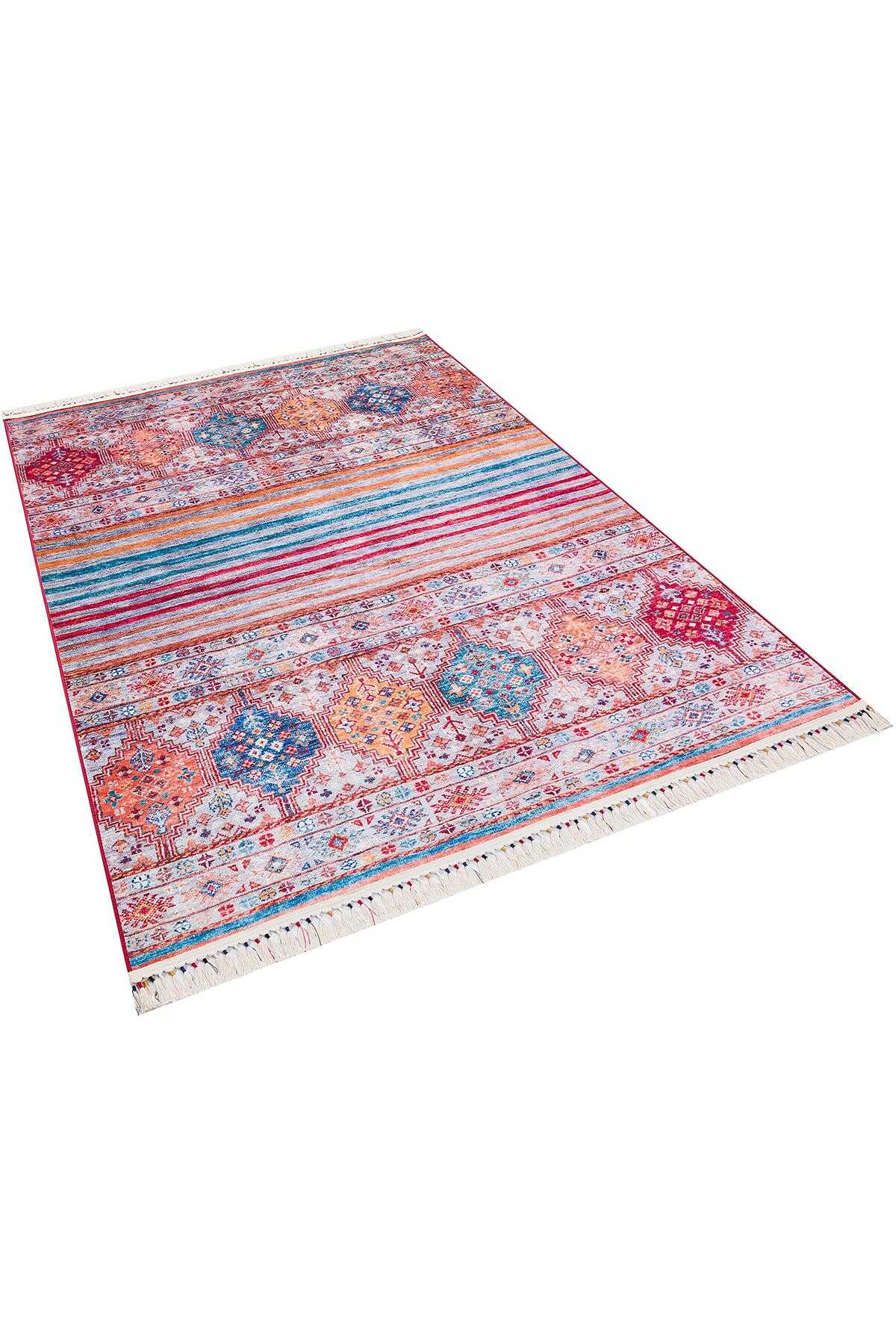 Çamaşır makinesiyle 30 derecede yıkanabilir, renkli baskı halıdır.