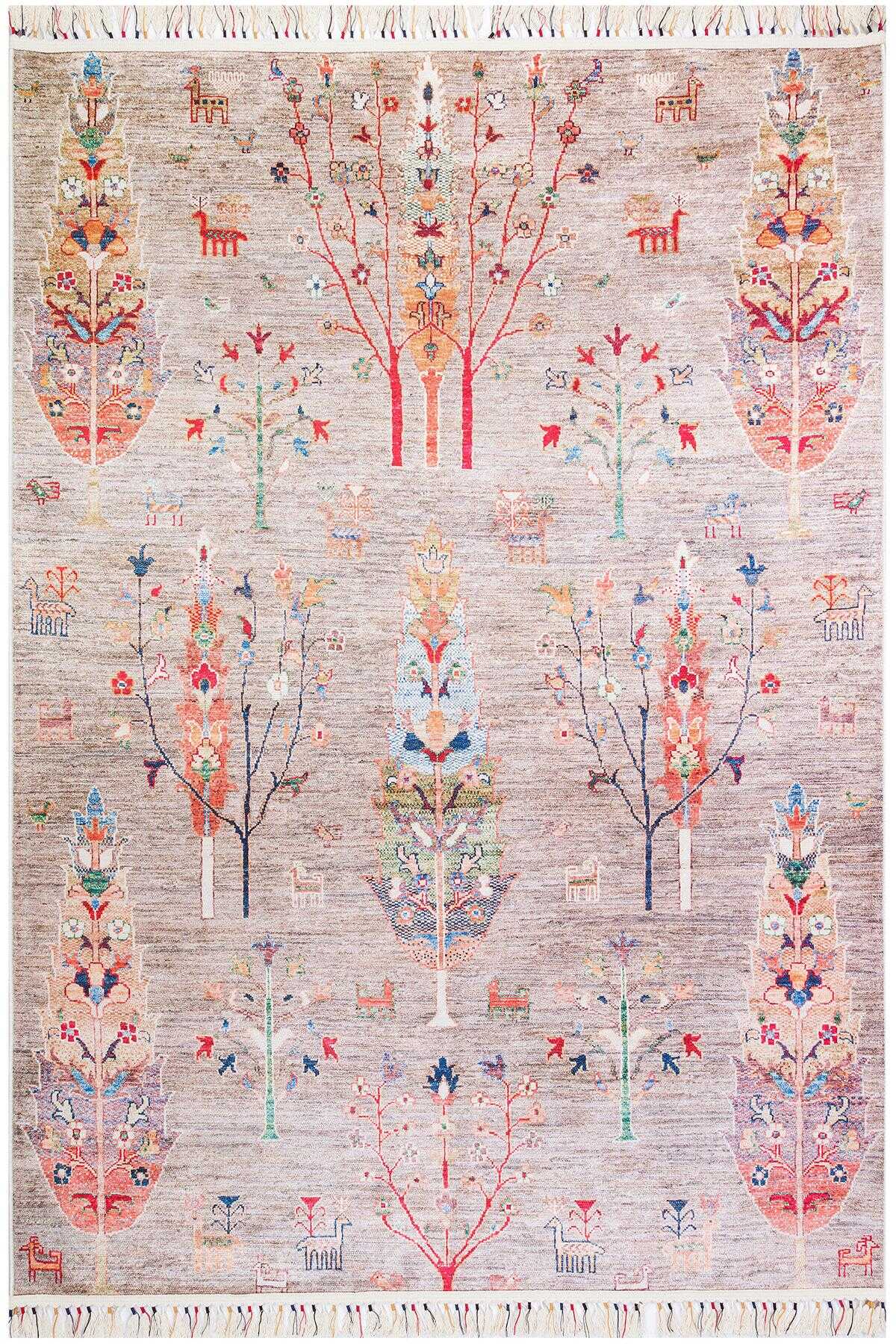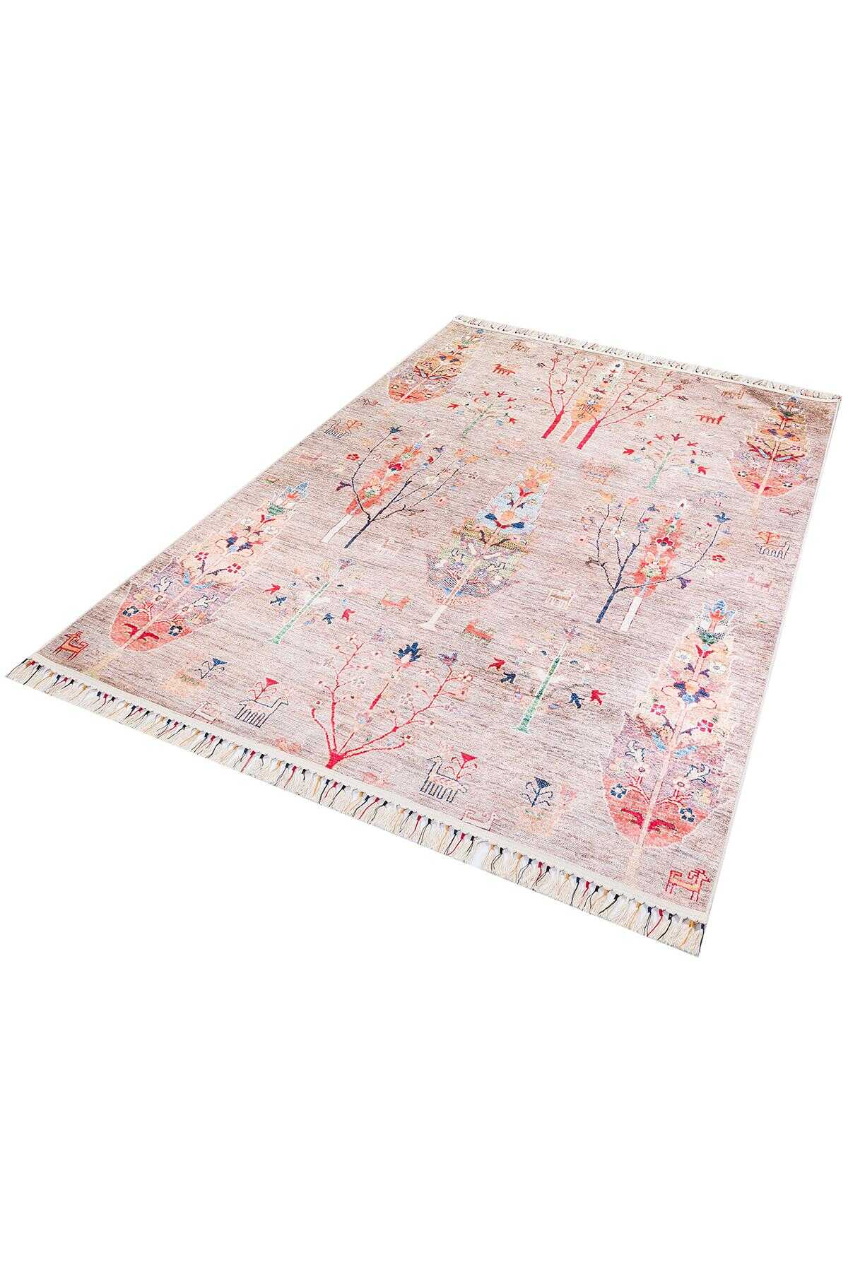 Şal Desenli Dokuma Pamuk Taban Dijital Dekoratif Halı Vizon