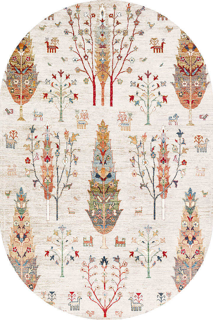 Şal Desenli Dokuma Pamuk Taban Dijital Dekoratif Oval Halı Krem