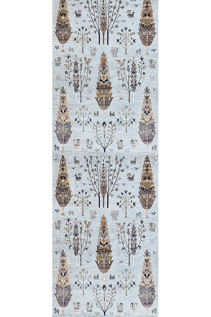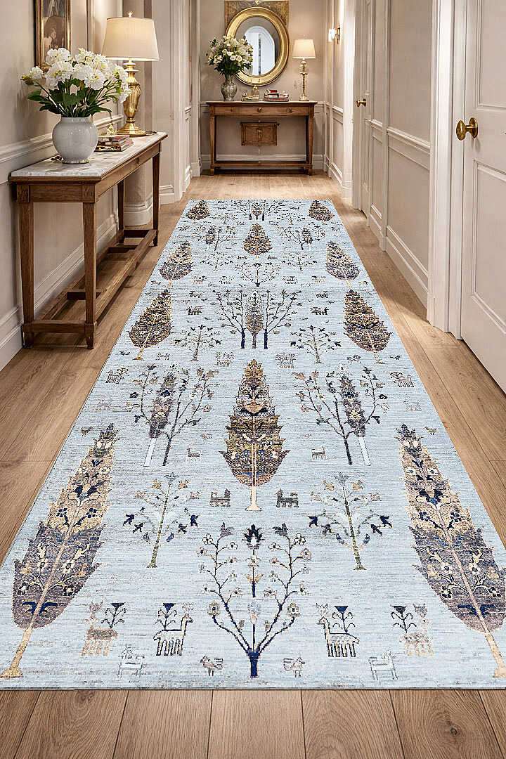 Şal Desenli Dokuma Pamuk Taban Dijital Dekoratif Yolluk Halı Mavi