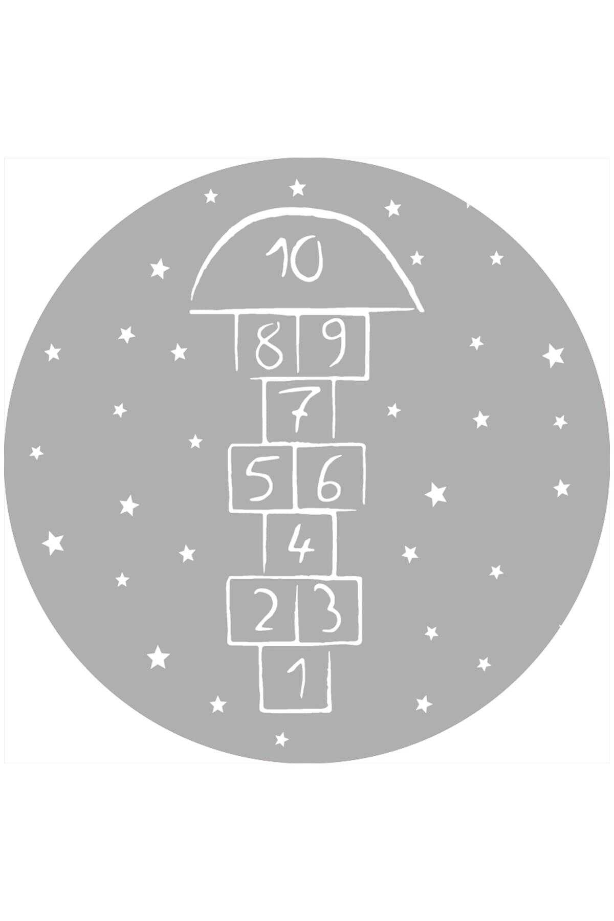 Seksek Desenli Kaymaz Deri Taban Yuvarlak Oyun Halısı Gri