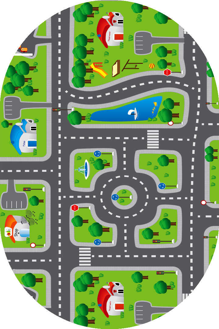 Trafik Desenli Pamuk Taban Baskılı Yıkanabilir Oval Oyun Halısı
