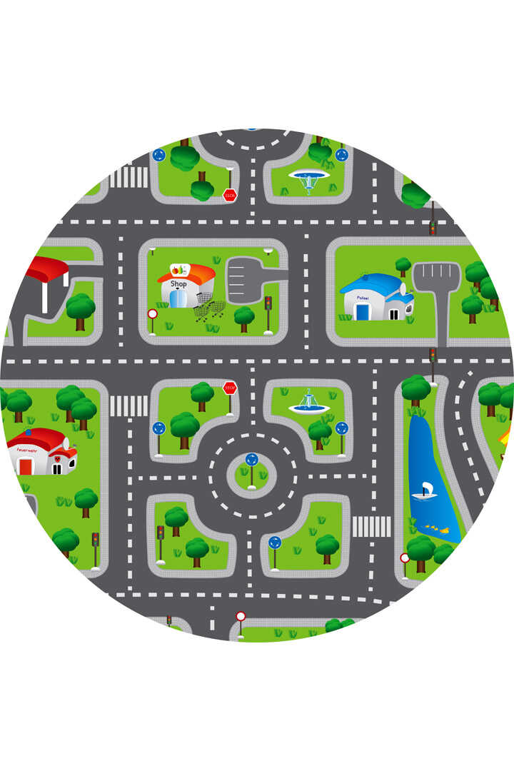 Trafik Desenli Pamuk Taban Baskılı Yıkanabilir Yuvarlak Oyun Halısı