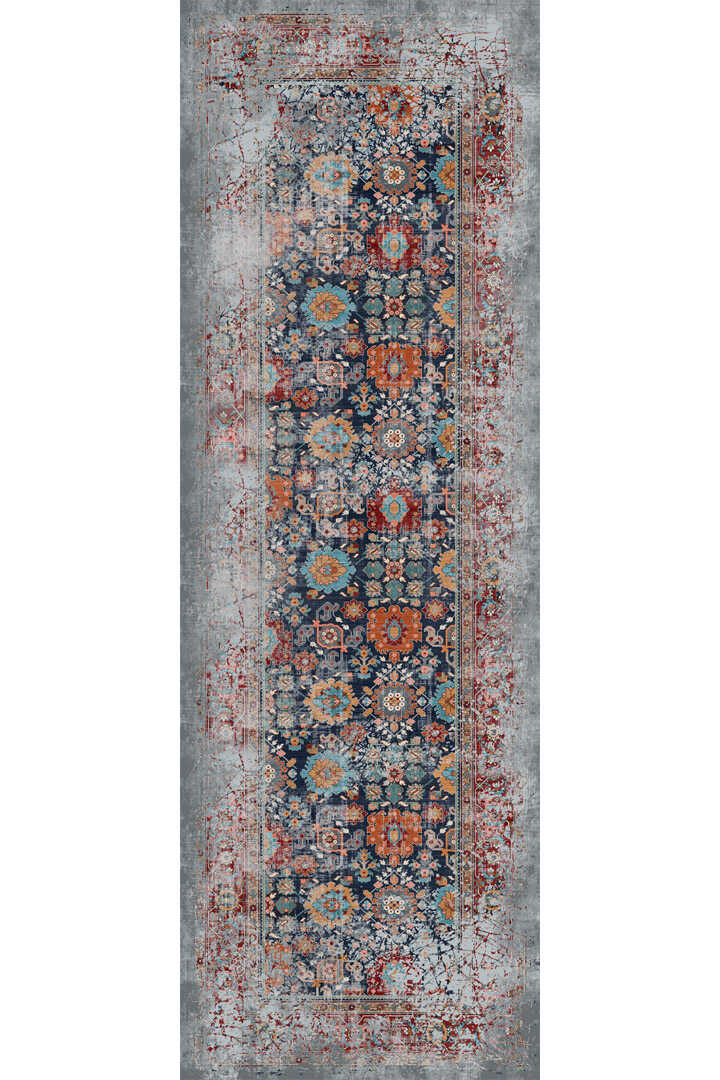 Vintage Desen Pamuk Taban Dijital Baskılı Yıkanabilir Özel Ölçü Yolluk Halı Gri
