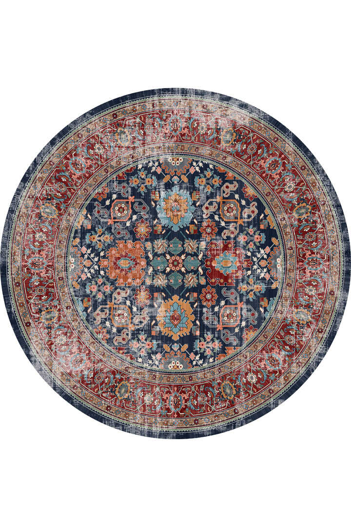 Vintage Desen Pamuk Taban Dijital Baskılı Yıkanabilir Yuvarlak Halı Lacivert