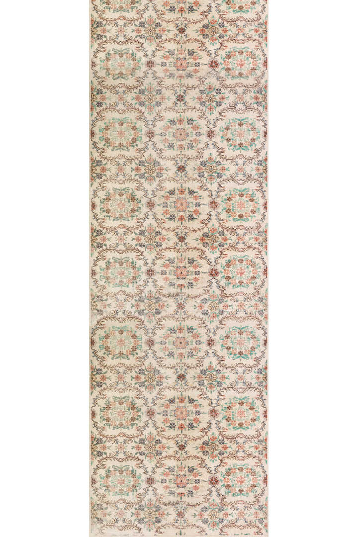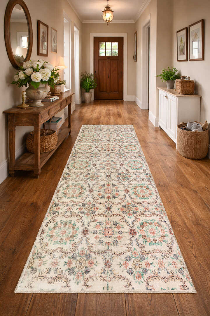 Vintage Desen Pamuk Taban Yıkanabilir Özel Ölçü Yolluk Halı Krem