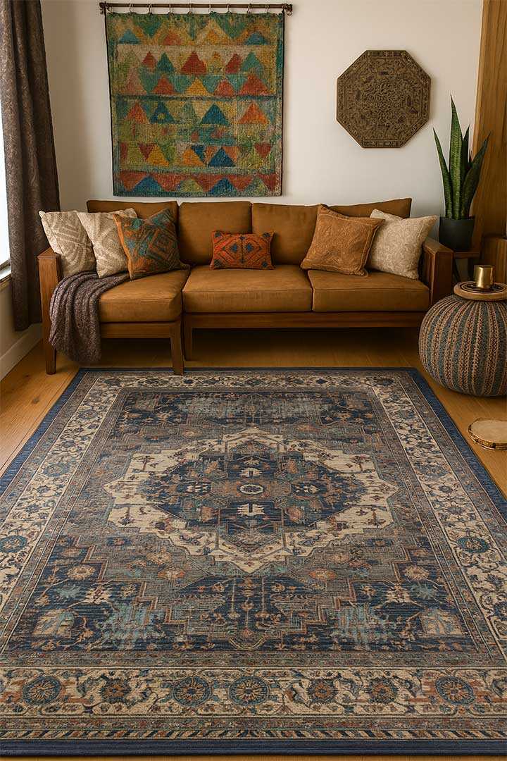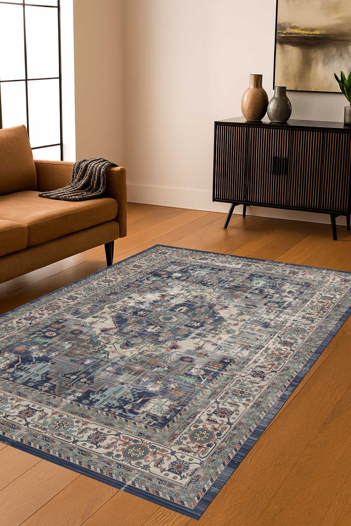 Vintage Desen Şark Köşesi Pamuk Taban Baskılı Halı