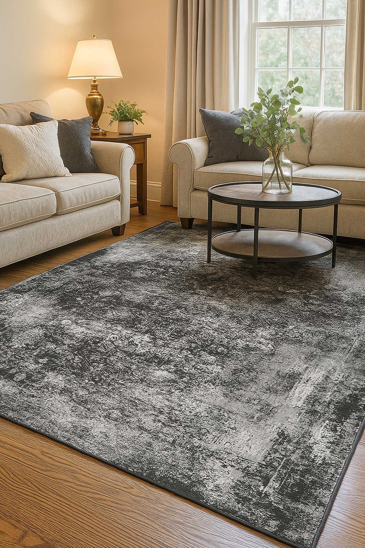 Vintage Desen Yıkanabilir Pamuk Taban Dekoratif Halı Gri
