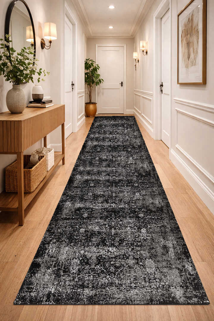 Vintage Desen Yıkanabilir Pamuk Taban Dekoratif Yolluk Halı Gri