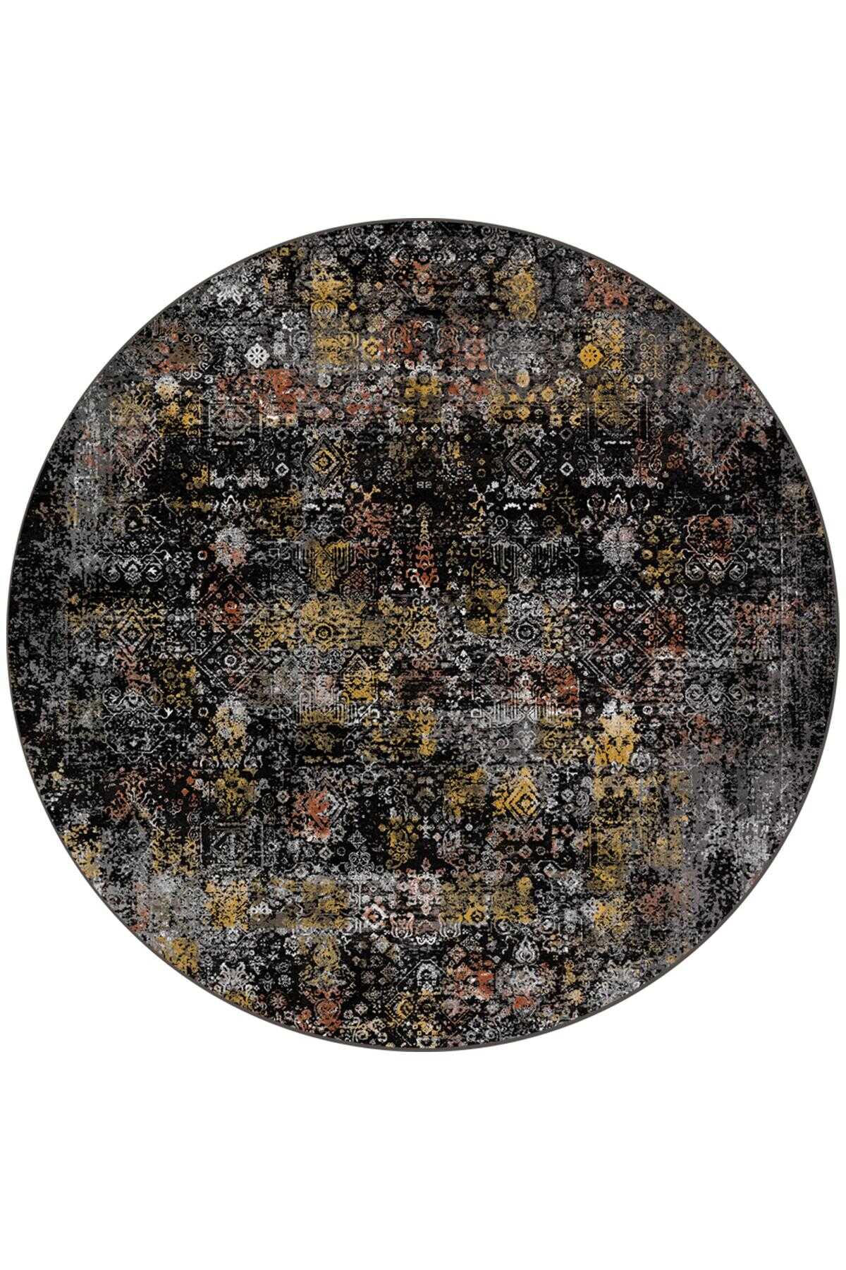 Vintage Desen Yıkanabilir Pamuk Taban Dekoratif Yuvarlak Halı Siyah
