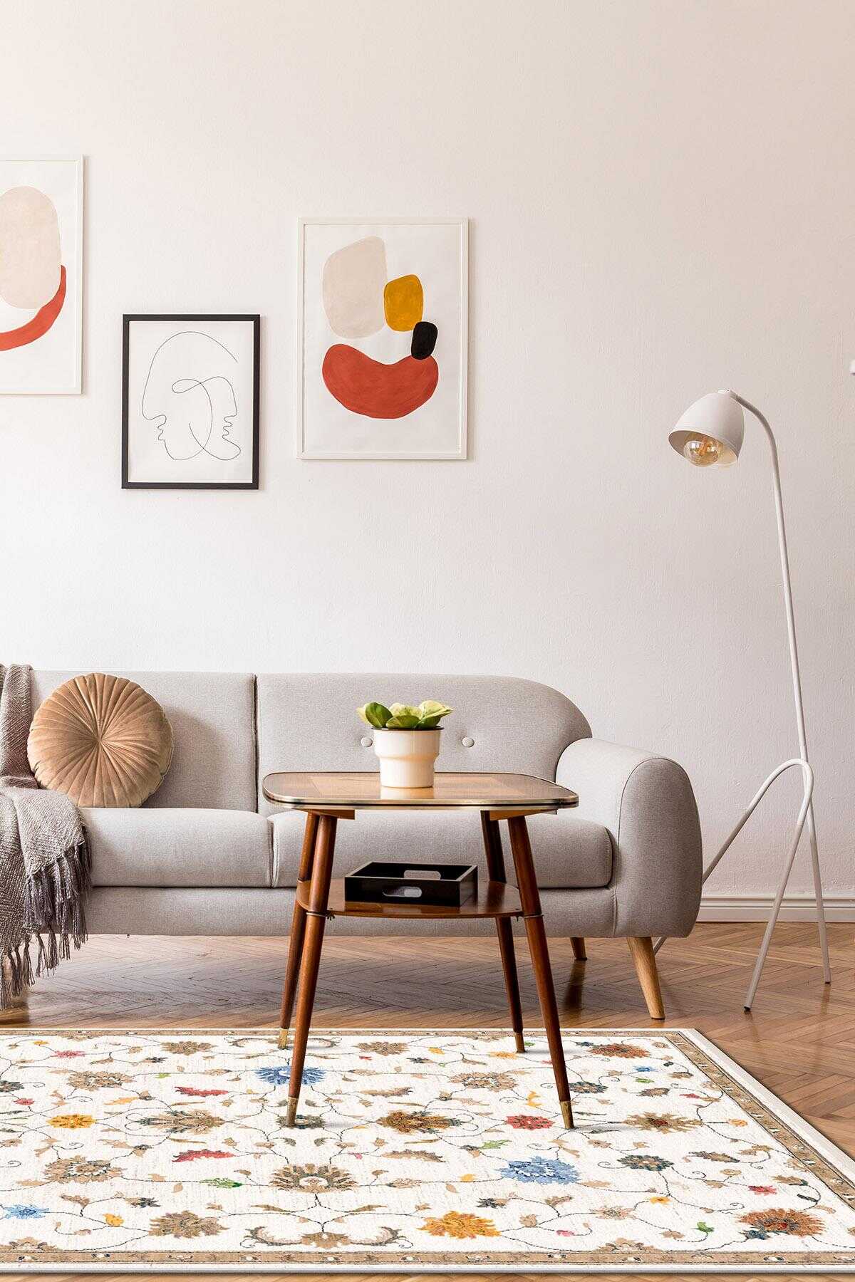 Çamaşır makinesiyle 30 derecede yıkanabilir, renkli baskı halıdır.