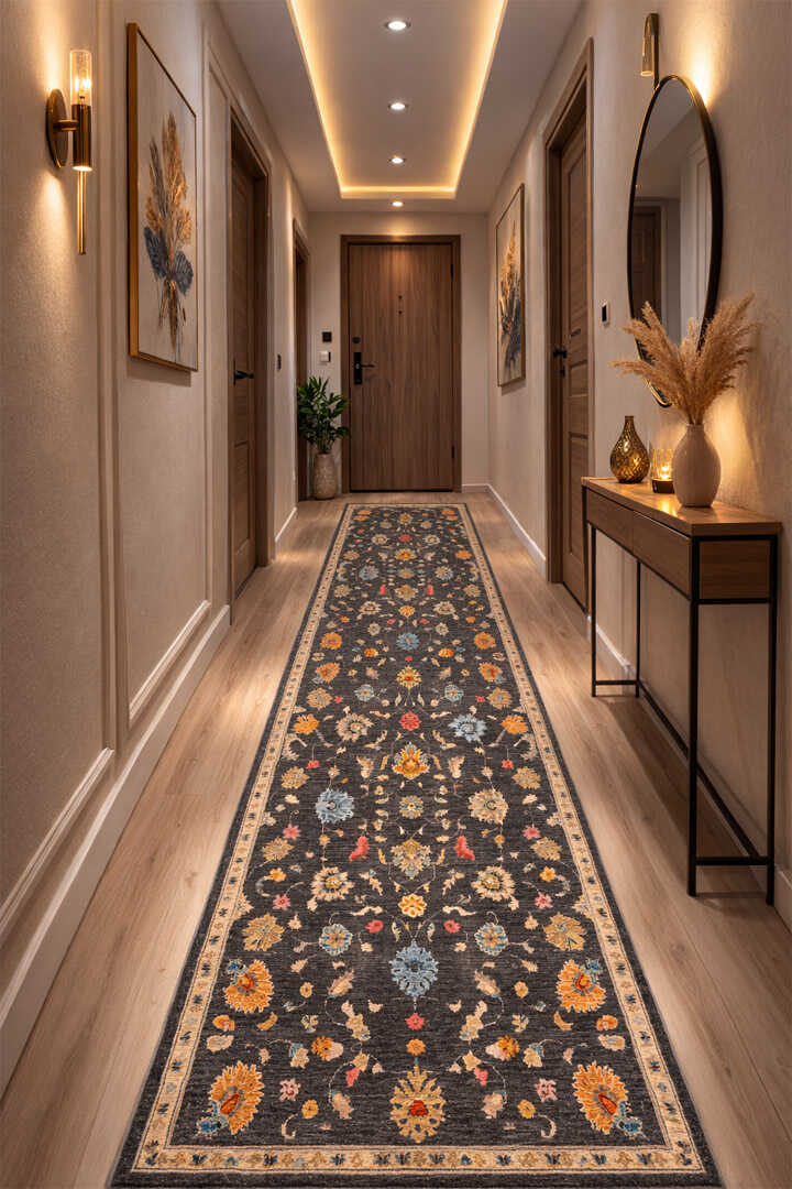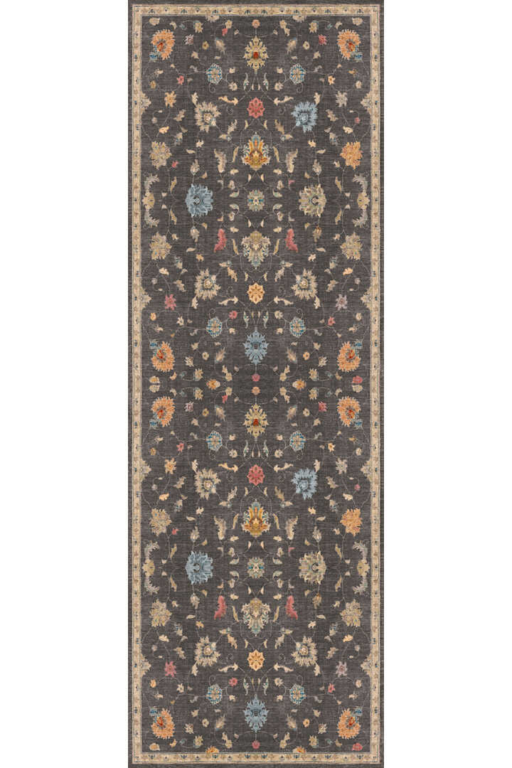 Vintage Desenli Dokuma Pamuk Taban Dijital Dekoratif Kesme Yolluk Halı Gri