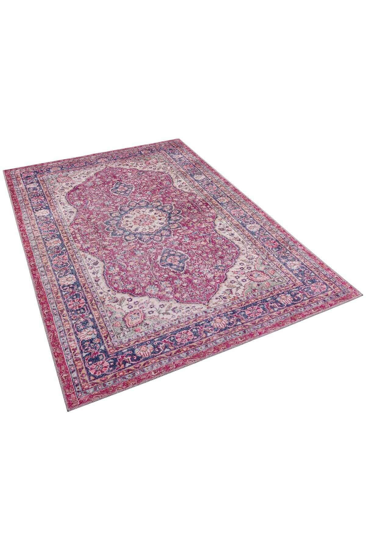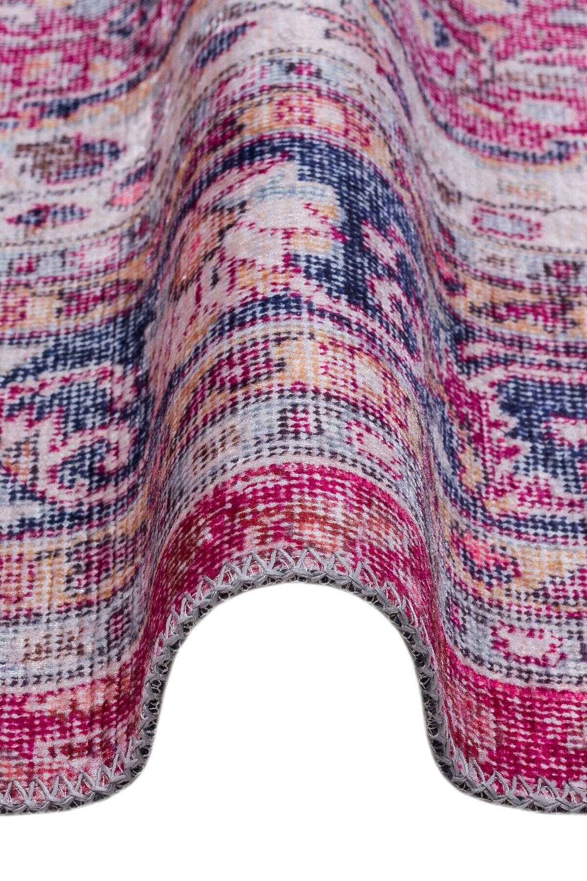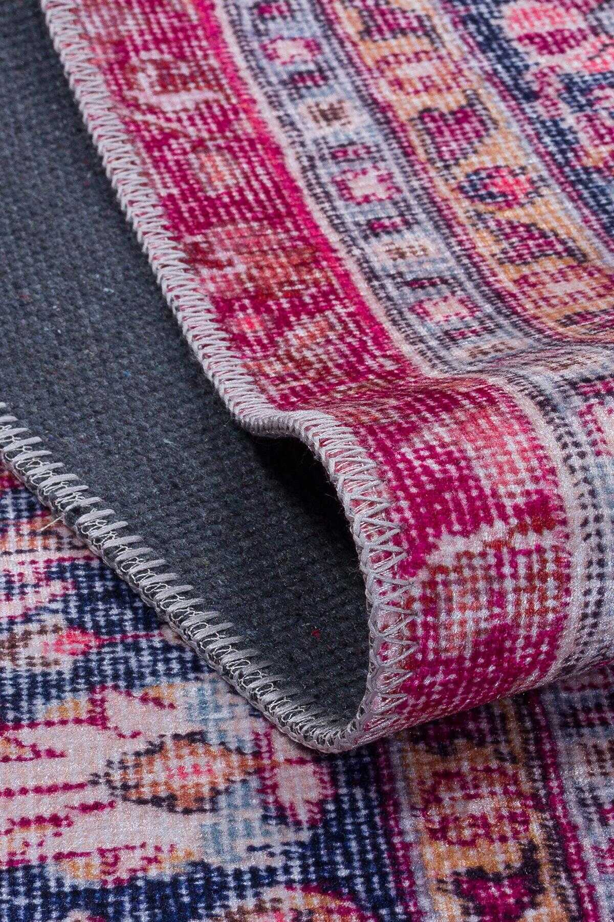 Vintage Desenli Pamuk Taban Baskılı Halı Kırmızı