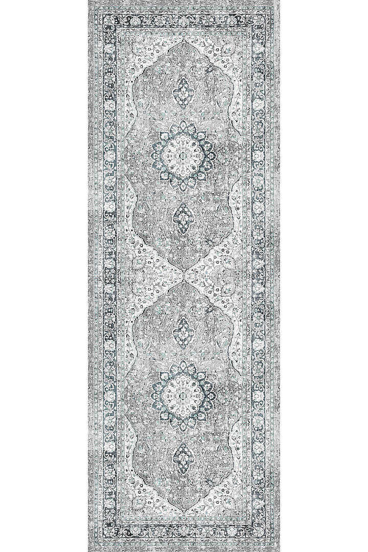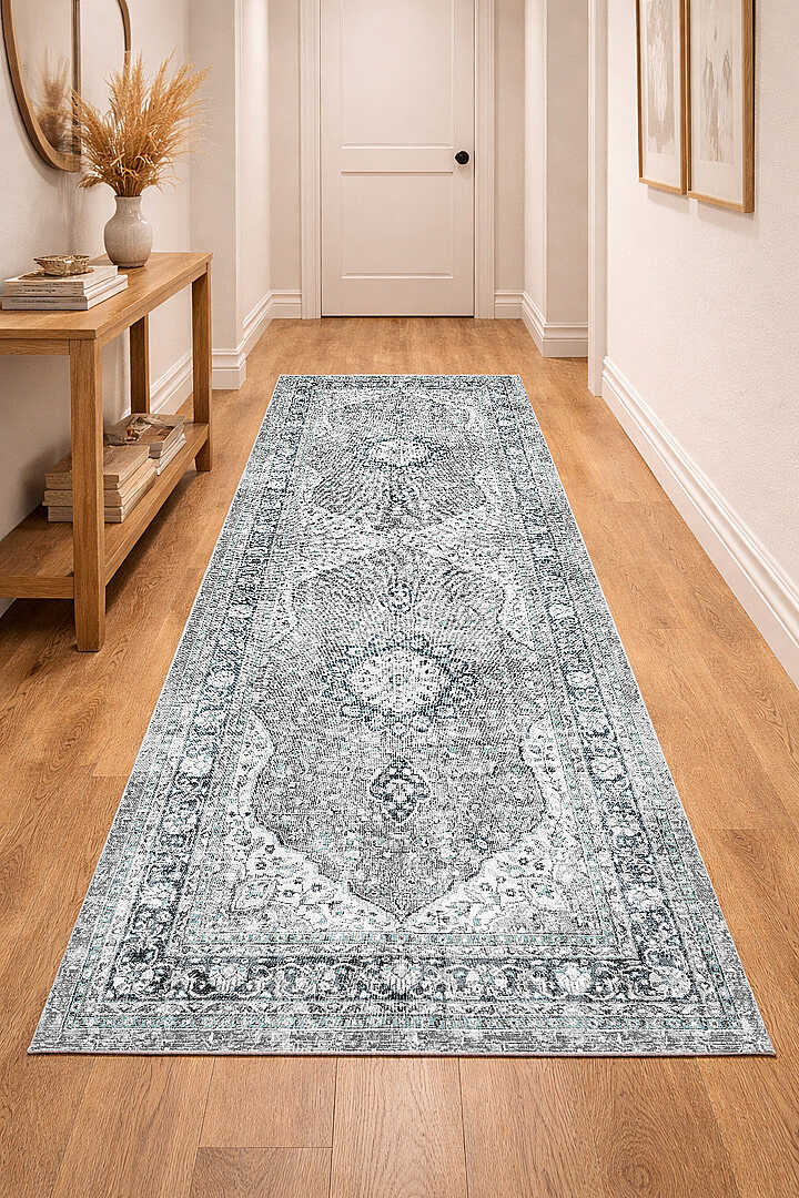 Vintage Desenli Pamuk Taban Baskılı Yolluk Kesme Özel Ölçü Halı Yeşil