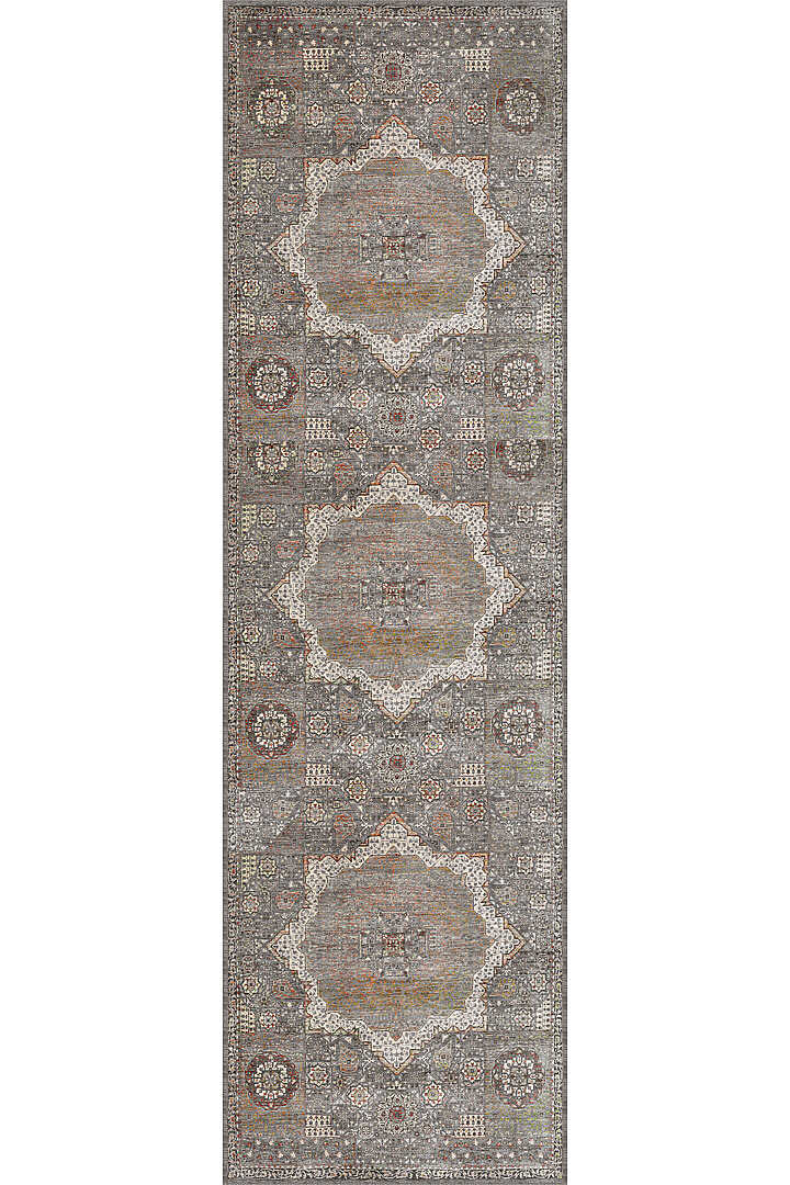 Vintage Desenli Pamuk Taban Dekoratif Yolluk Halı Gri