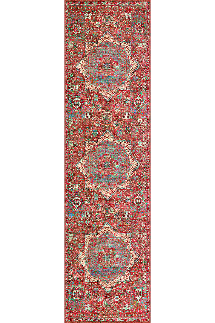 Vintage Desenli Pamuk Taban Dekoratif Yolluk Halı Kırmızı