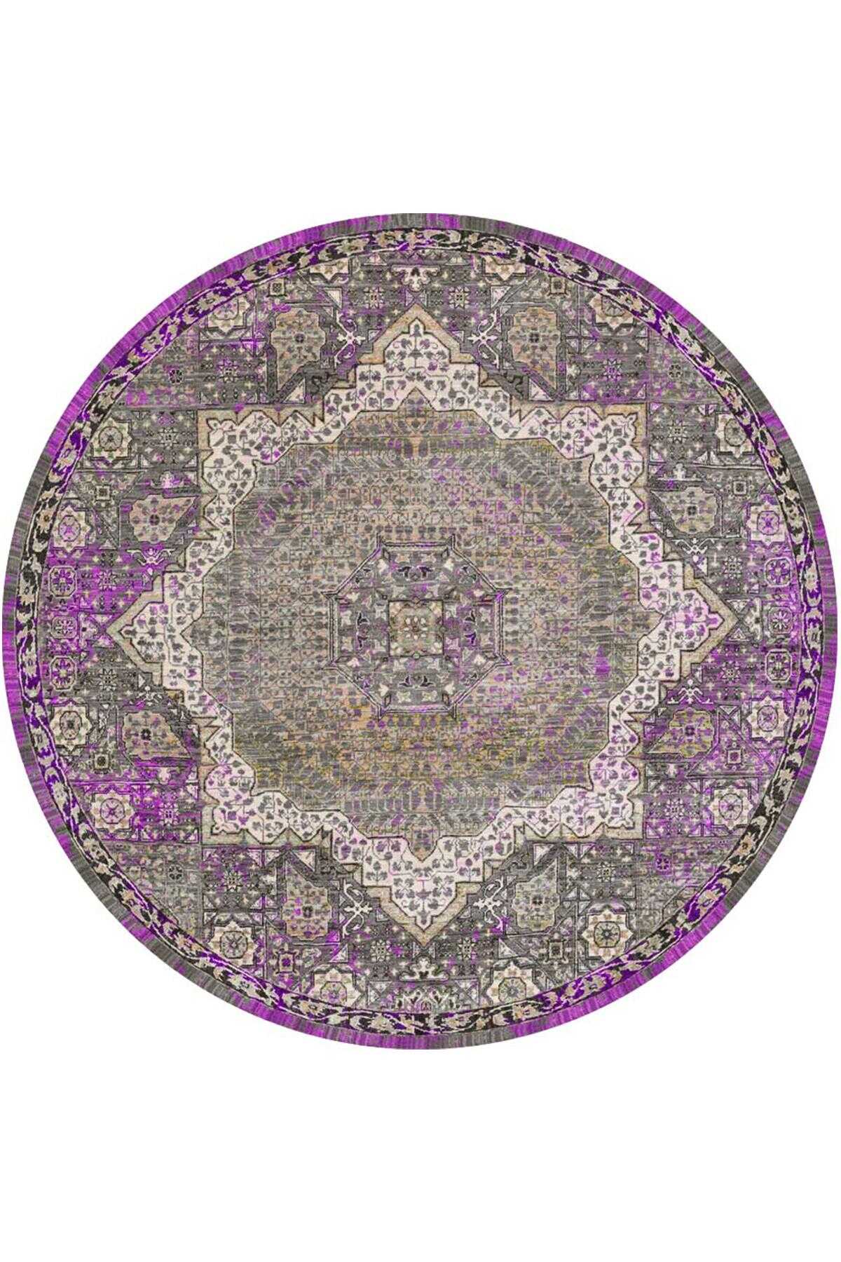Vintage Desenli Pamuk Taban Dekoratif Yuvarlak Halı Fuşya