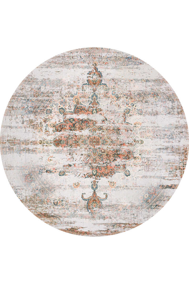 Vintage Desenli Pamuk Taban Yıkanabilir Yuvarlak Halı Turuncu